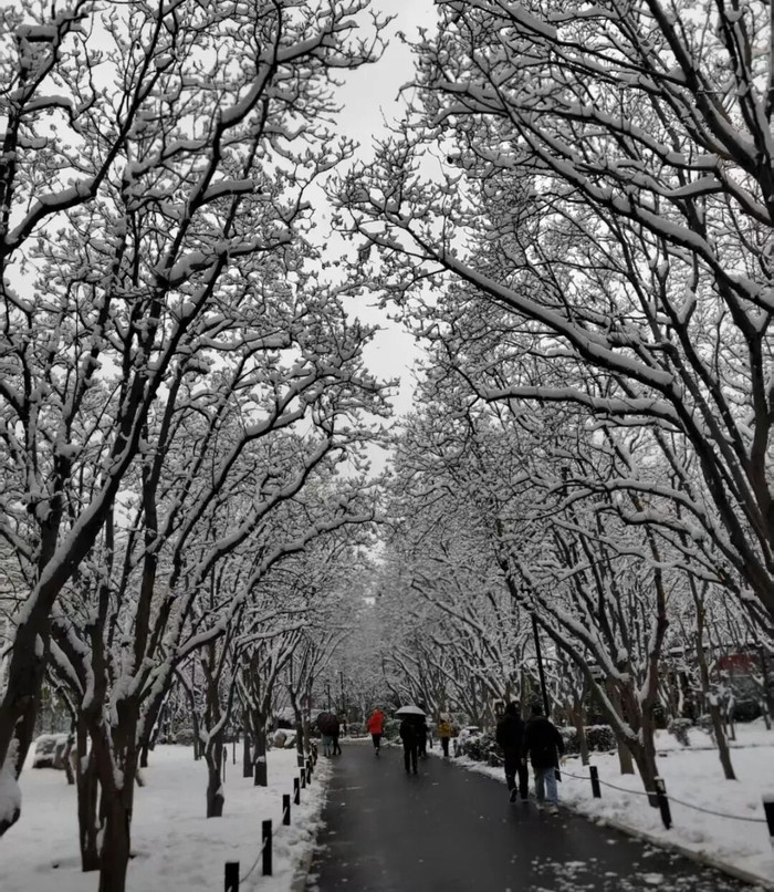 花圃公园更是美若仙境,琼枝玉叶挂满蓬松积雪,湖面如镜倒映疏朗枝桠,步道旁的灌木丛被白雪勾勒出圆润轮廓,吸引无数游客驻足定格这份冬日浪漫。
