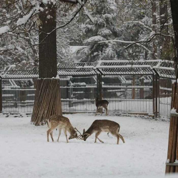 动物园里,皑皑白雪与灵动生灵相映成趣,憨态可掬的动物们在雪地里嬉戏,为冬日增添了无限生机。