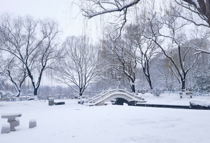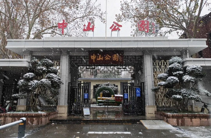 中山公园的古典园林与冬雪完美交融,飞檐翘角覆雪如诗,红墙白雪相映,定格出江南般的温婉意境。