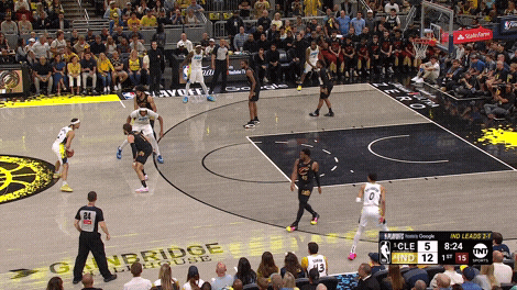 系列赛首个回合便预示了骑士的命运,尽管步行者该回合未得分:莫布利(先前已在掩护中换防)在换防迈尔斯-特纳和哈利伯顿的手递手时,贾勒特-阿伦(对位帕斯卡尔-西亚卡姆)换防顺下的特纳,但马克斯-斯特鲁斯仍追防哈利伯顿,导致西亚卡姆被完全放空……