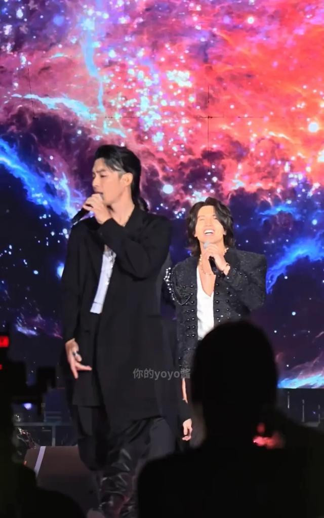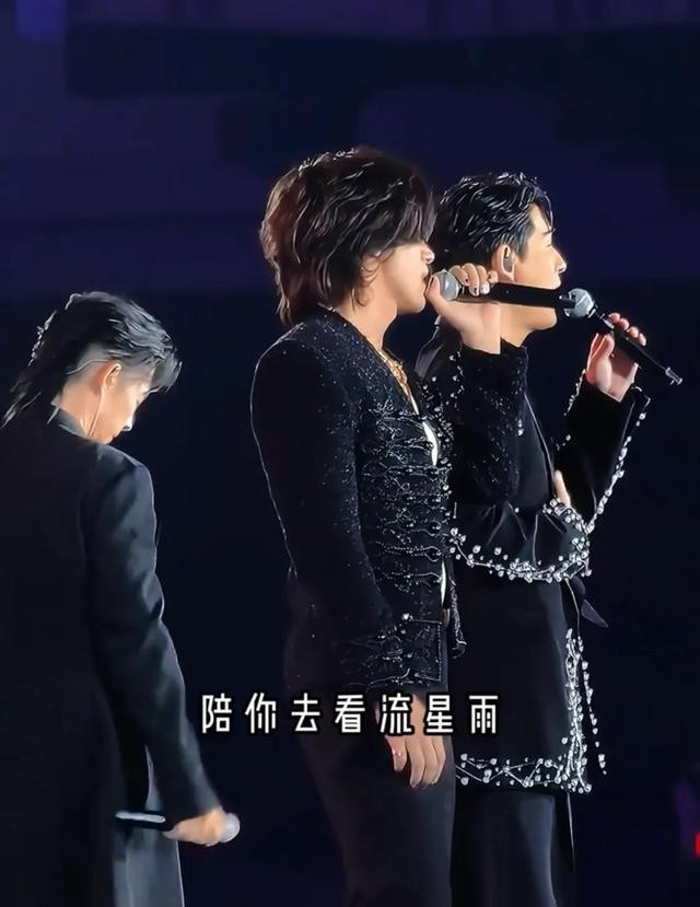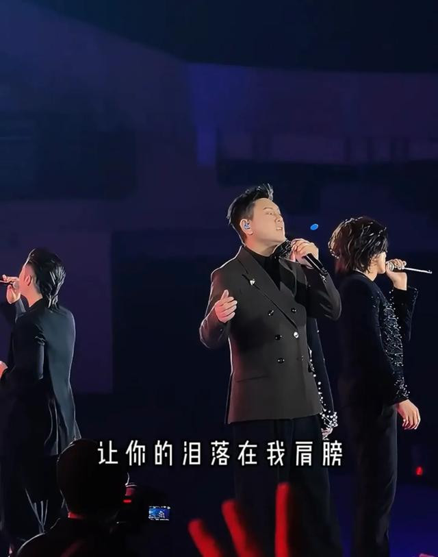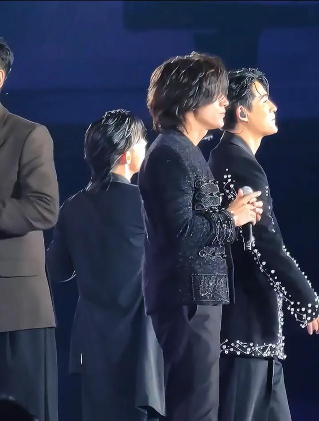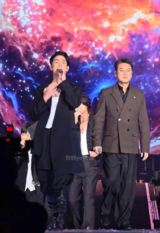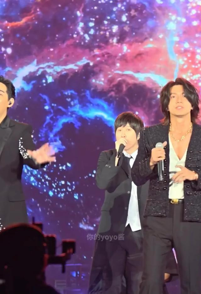 舞台上的五个人都40多岁了,但是他们脸上都看不出年龄来,尤其是言承旭,他和年轻时一样帅气,他笑起来太美了。他这一夜穿了一件深VT恤,“法拉利老了依然是法拉利”,童年男神不愧是颜值天花板,48岁的他依然迷人。