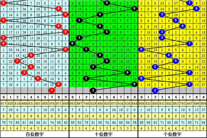 百位分析:上期出现号码8为:大号、合数,在连续9期开奖中,百位分别为:小 号、合数:0;小 号、合数:0;大号、合数:9;小 号、合数:4;小 号、质数:2;小 号、合数:4;小 号、质数:3;大号、质数:5;大号、合数:8,其中大号频次较低,质数开出较热,百位本期预计开出大号、质数。