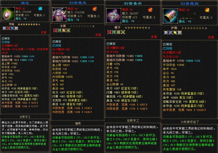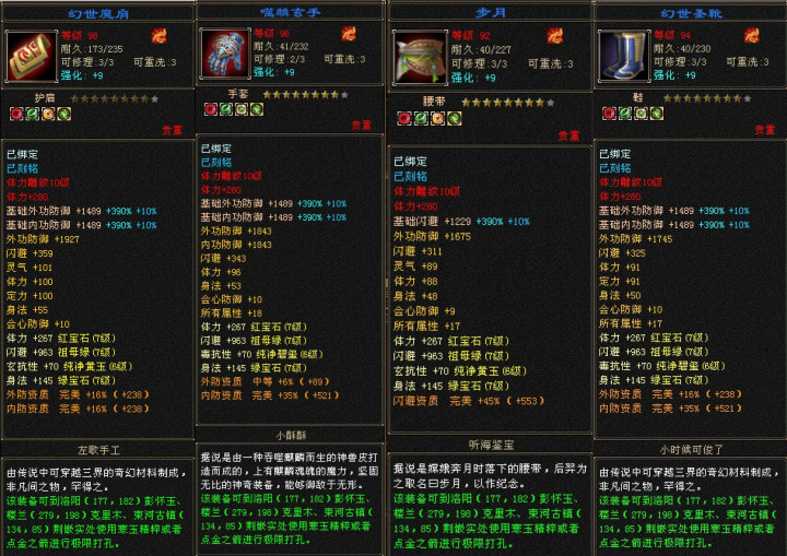 防具除了护肩都是全属性,按照少年游的物价,这几个防具一件至少2万元。
