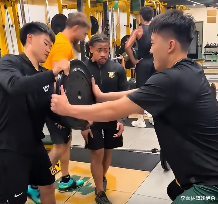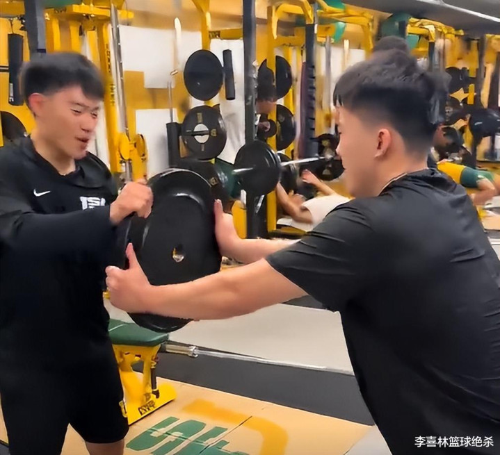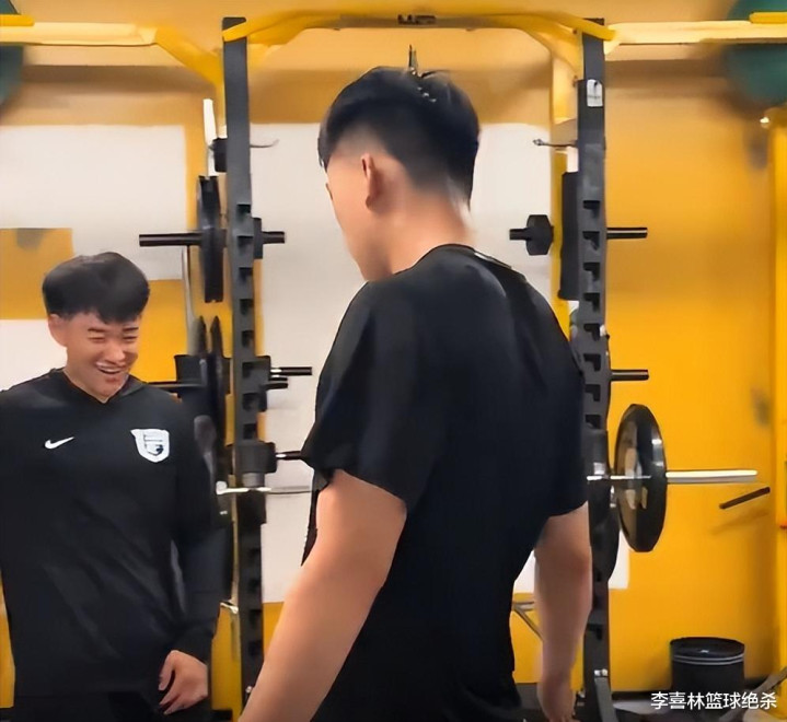 王俊杰还到了健身房进行身体力量训练,他和主教练亲切打招呼,然后进行了卧推训练。王俊杰还在赵维伦的协助下进行核心力量训练。