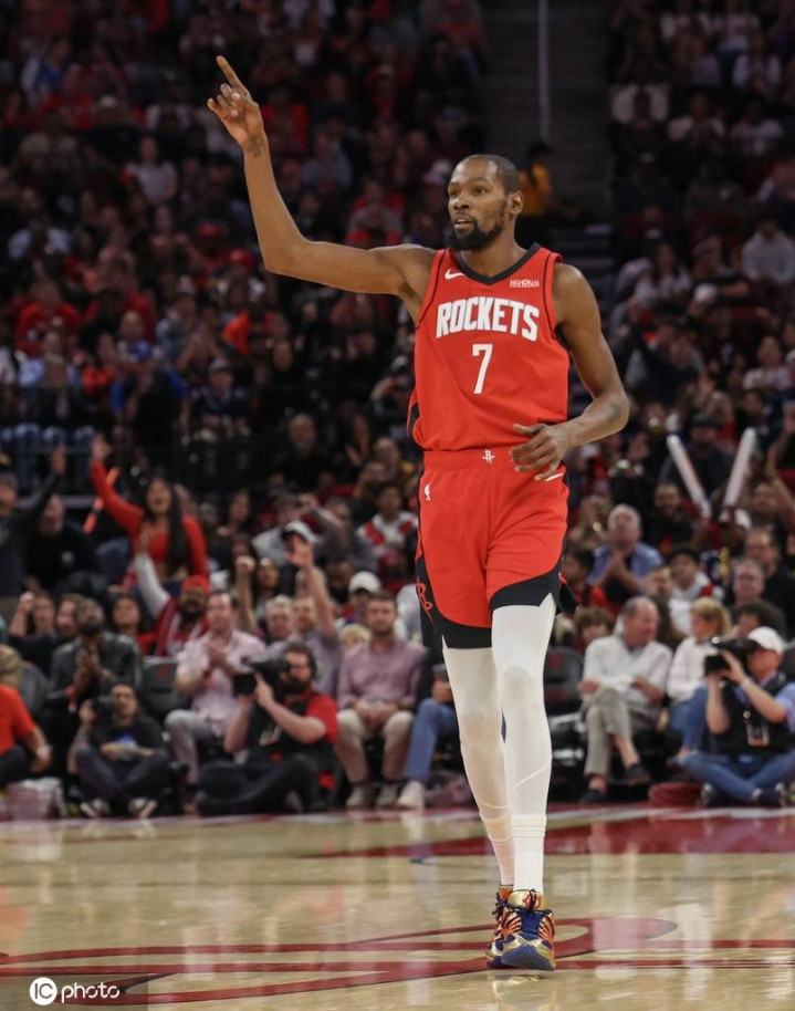 杜兰特场均贡献27.2分,有效投篮命中率高达60.9%。特别是当杜兰特持球遭遇包夹时,他总能为队友创造空位投篮机会,这似乎印证了杜兰特就是火箭队重要拼图的言论。