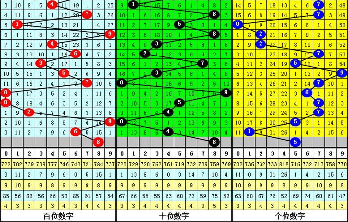 百位目前最冷号码为:8,当前遗漏15期,该号码历史最大遗漏为57期,本期防百位8解冻;