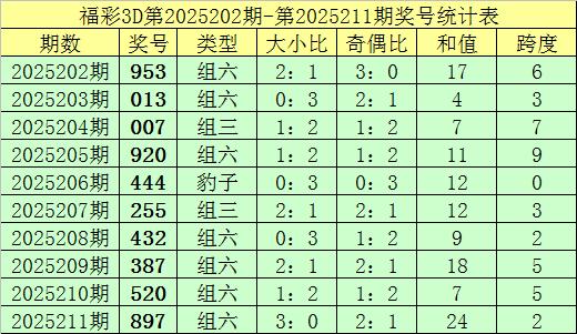 其中大小比3:0,奇偶比2:1,和值24,跨度2。