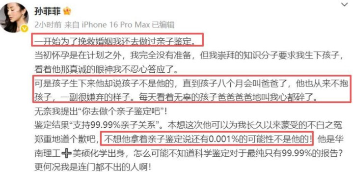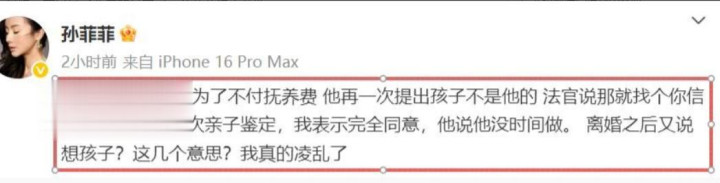 眼看这盆“脏水”一时半会泼不掉了,气的孙菲菲连发长文,控诉对方兄弟的不孝。
